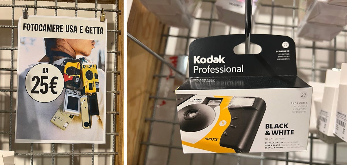 C'è un altro aspetto, interessante ed opposto (o, forse, complementare): il pubblico più giovane ama le compattine e la loro resa "terribile" che considerano più "autentica", o addirittura le fotocamere usa e getta a pellicola, che hanno oggi dei costi davvero privi di senso e che si comprano nei concept store più esclusivi delle metropoli di tutto il mondo. Non è un caso che una società che da anni è impegnata nel mondo delle app "vintage" per scattare fotografie dal gusto retrò, Hipstamatic, ha presentato un'interessante novità, si chiama Disposable Camera, un'app standalone che riprende l'esperienza nostalgica delle classiche fotocamere usa e getta, combinandola con la comodità del digitale. L'app è progettata per eventi come i matrimoni: gli ospiti possono scattare foto che vengono raccolte in un unico album privato condivisibile solo tra i partecipanti, che al tempo stesso offre alcune funzionalità sociali come la possibilità di mettere like e commentare le foto all'interno della galleria privata. Il prezzo dell'app è variabile in base alle opzioni scelte: si scarica gratis, ma poi sono previsti pacchetti per eventi e matrimoni a partire da $99 e $200 (chi aveva detto che nel digitale e nel mondo delle APP tutto è gratis?). Guardate il video, dal punto di vista emozionale può essere interessante da valutare: