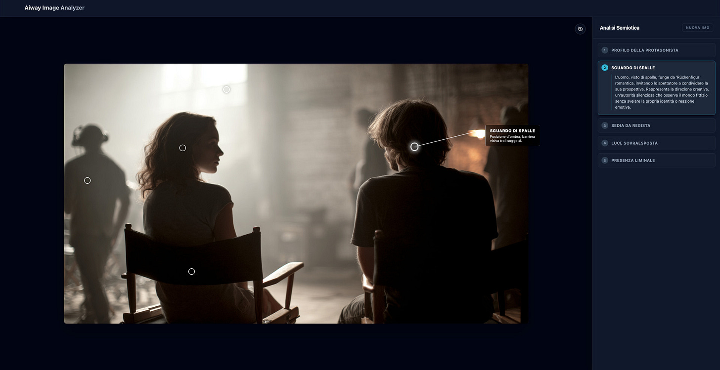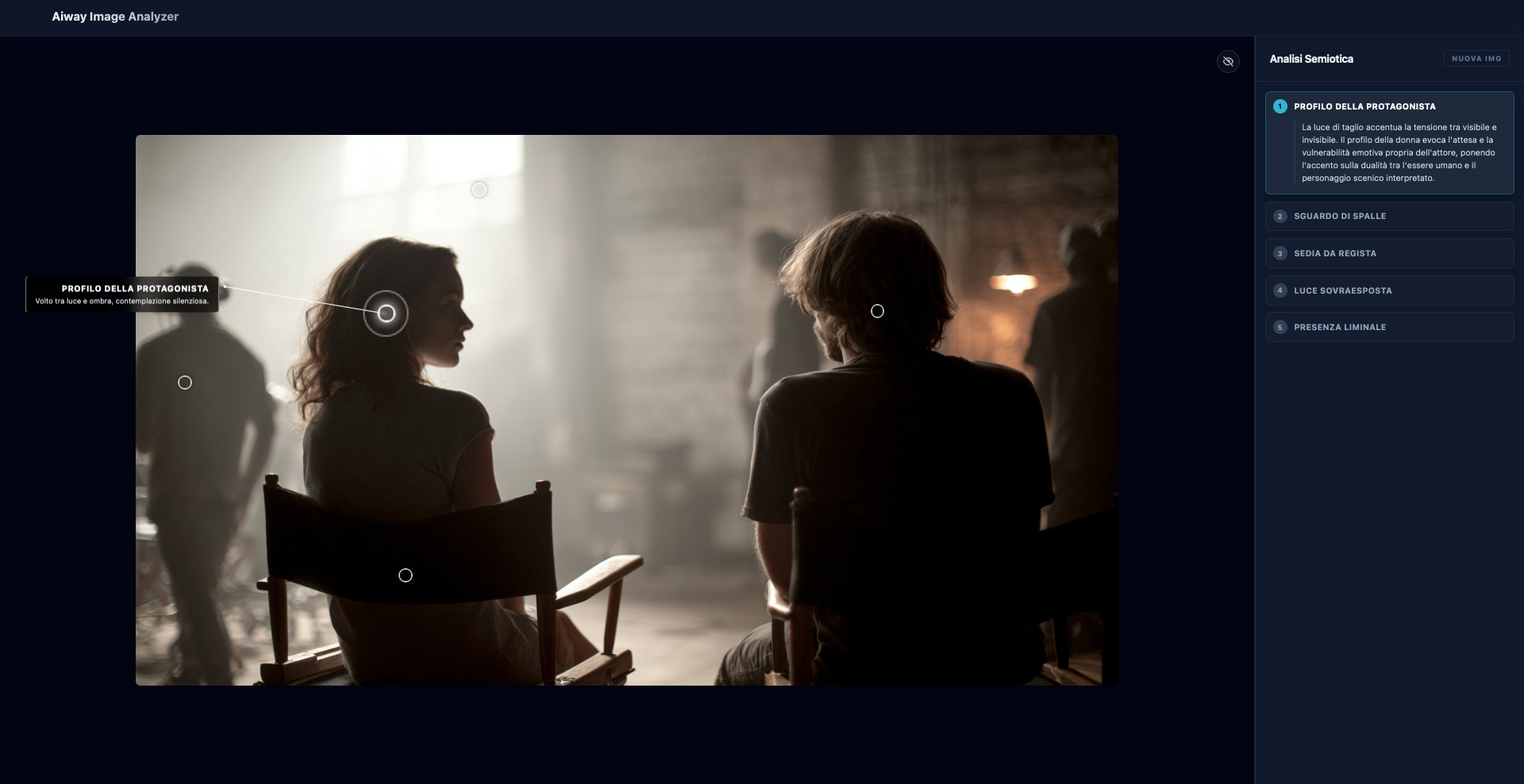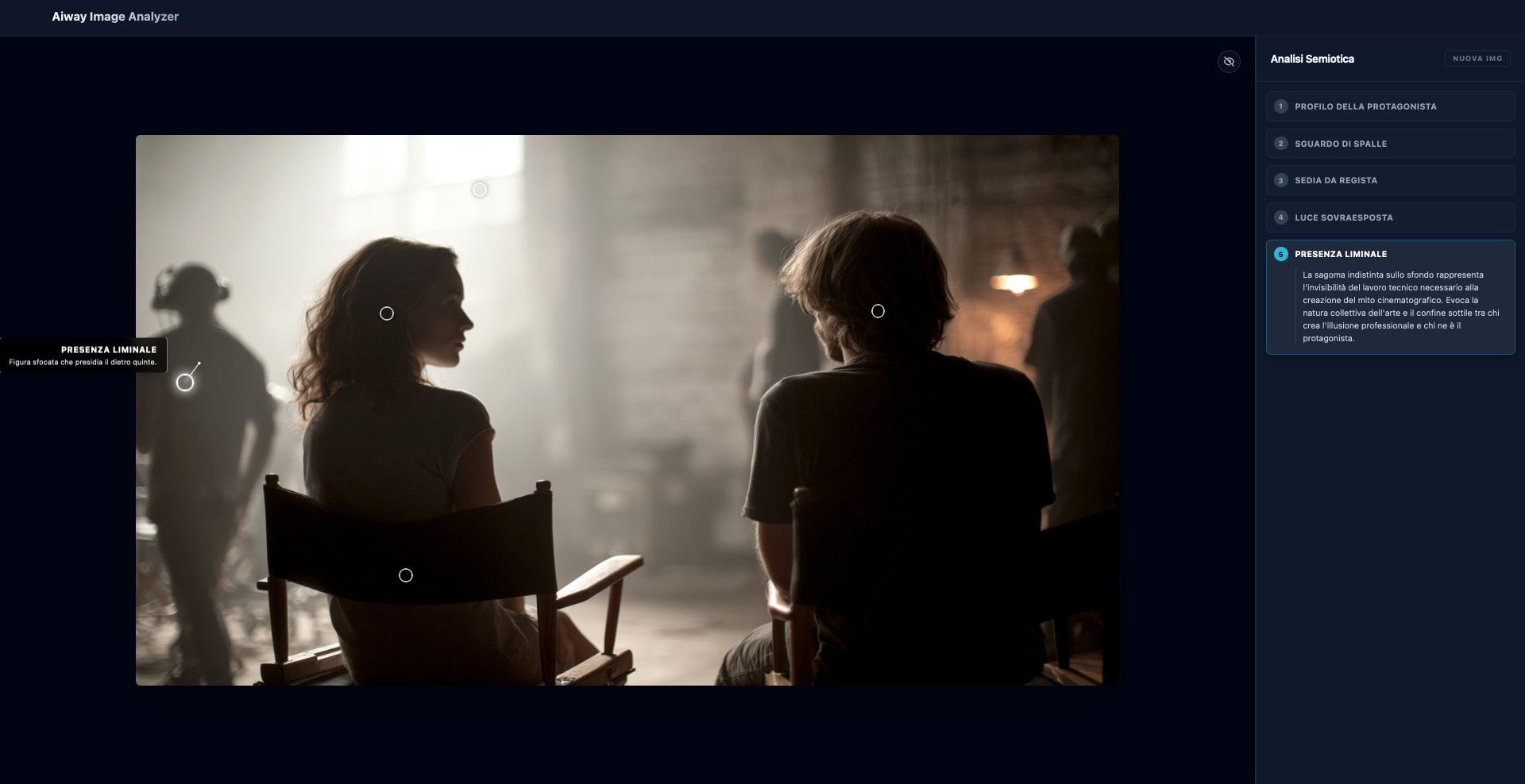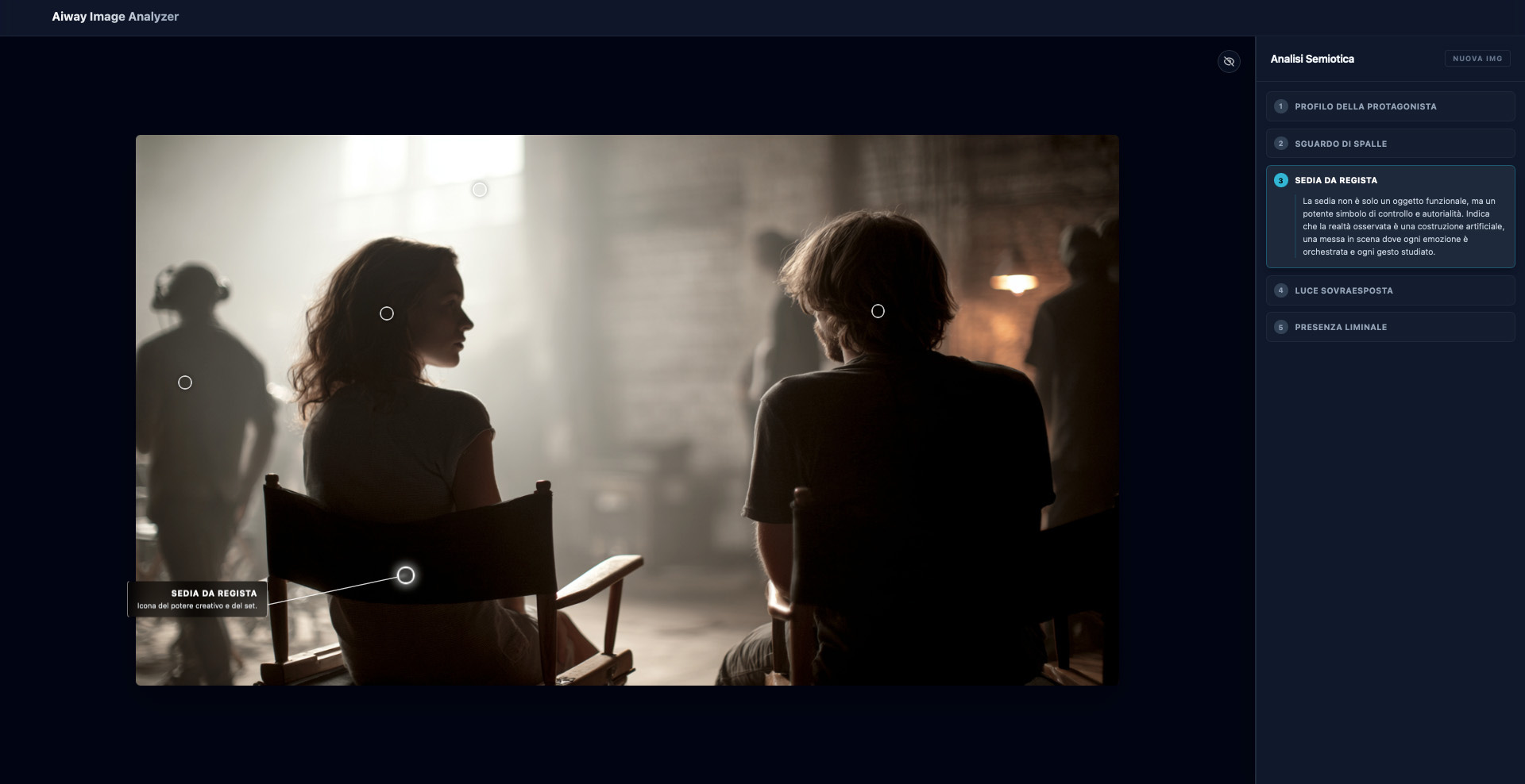 Abbiamo appena finito un esperimento che vorremmo condividere con voi. Abbiamo costruito un’applicazione, con l’aiuto dell’AI, attraverso quello che si chiama “vibe coding”, ovvero la strada che porta a scrivere codice (per un sito, per un’app), descrivendo quello che vogliamo ottenere... e l’AI lo realizza. Questa web app analizza le immagini non tanto per quello che mostrano, ma per quello che significano. Non si limita a descrivere una scena: ne esplora la semiotica, il linguaggio nascosto tra i pixel.