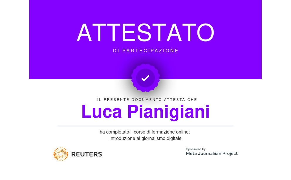 Il corso è come detto totalmente gratuito, ci sono delle spiegazioni semplici ed efficaci e poi, alla fine di ogni capitolo, ci sono delle brevi domande per verificare (o per correggere) l’apprendimento. Lo abbiamo seguito e completato, possiamo garantirvi che è un impegno di un’oretta o poco di più, vi verrà riconosciuto un attestato di partecipazione che magari vi farà piacere possedere (qui sotto quello ottenuto dal sottoscritto). Sebbene il mestiere del sottoscritto che vi sta scrivendo sia, in gran parte, quello di giornalista da molti decenni e che siamo profondi conoscitori del mondo digitale, è stata anche per noi occasione per riflettere, per riprendere alcuni strumenti magari ingiustamente abbandonati (uno di questi Tweetdeck che aiuta a gestire e dominare meglio Twitter, strumento che è caduto immeritatamente in disuso nelle nostre abitudini quotidiane), e di sicuro ci hanno aiutato ad ottimizzare alcuni approcci. Siamo sicuri che sarà molto utile anche per voi: che non fate i giornalisti, che non avete questo obiettivo, ma che come tutti avete bisogno di dominare il sapere e la conoscenza, e non subirlo passivamente. Ci auguriamo che possa essere un esercizio utile per voi, fateci sapere se lo avete completato e cosa ne avete tratto.